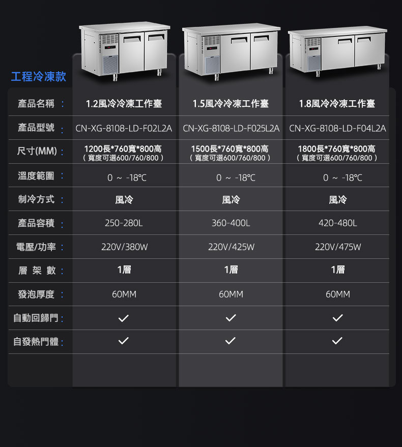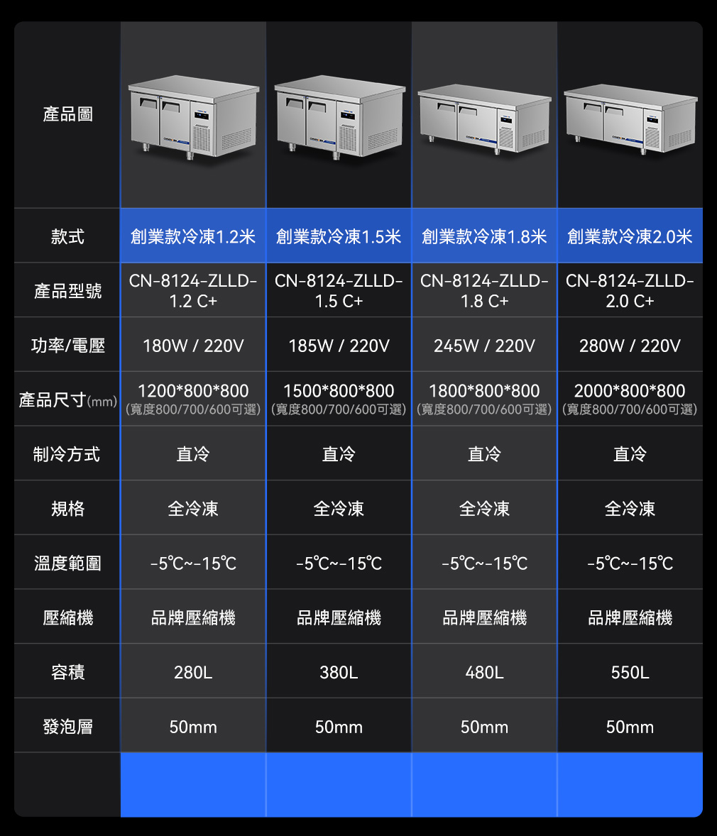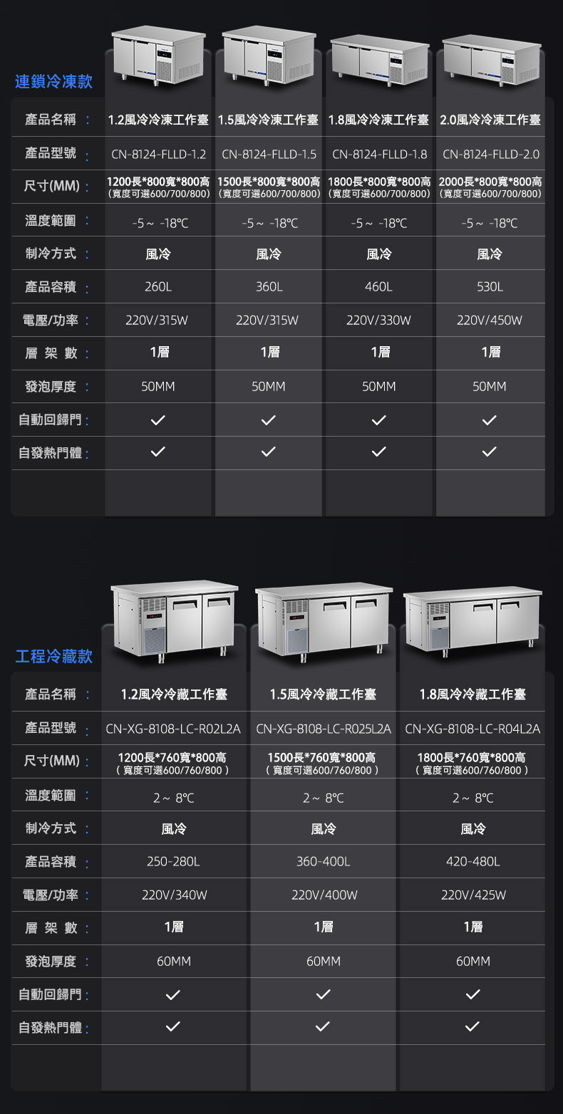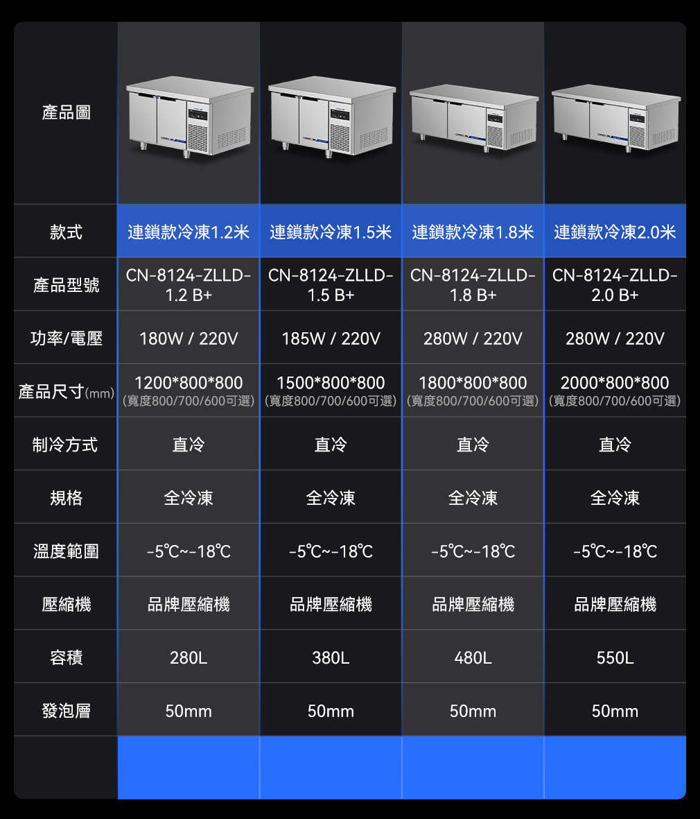 首頁 > 商廚設備分類 > 商用製冷 > (直冷/風冷)冷凍操作臺(工作臺)