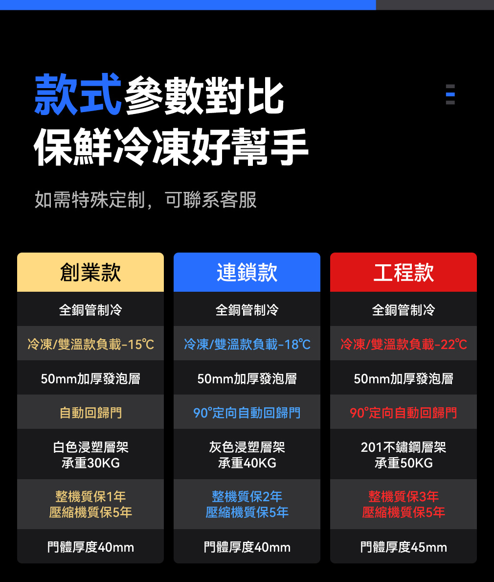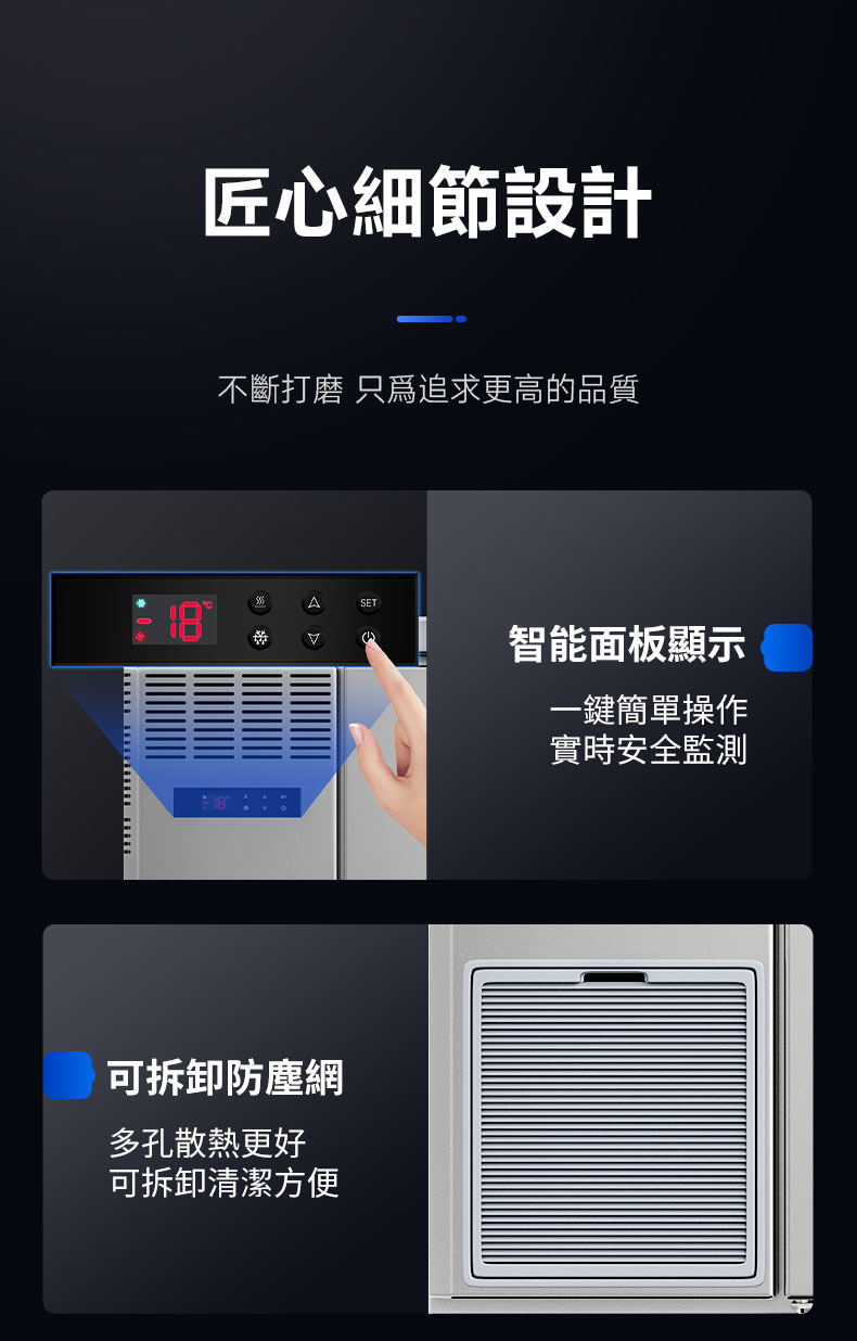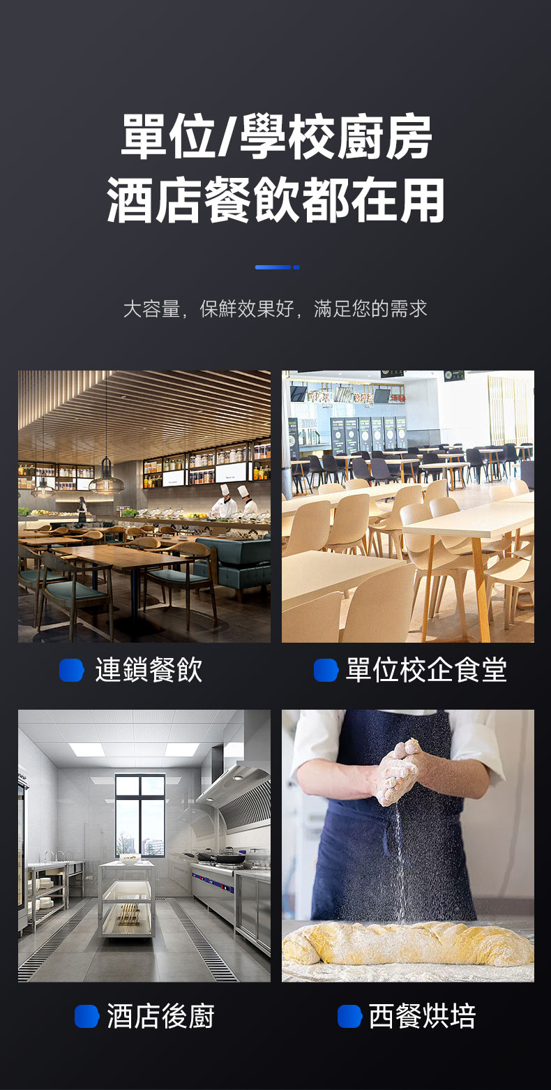 高效制冷系統:採用優質的制冷壓縮機和先進的制冷技術,能夠快速降溫,使櫃內溫度保持在較低且穩定的狀態,確保食材、原料等能夠得到良好的冷凍儲存。