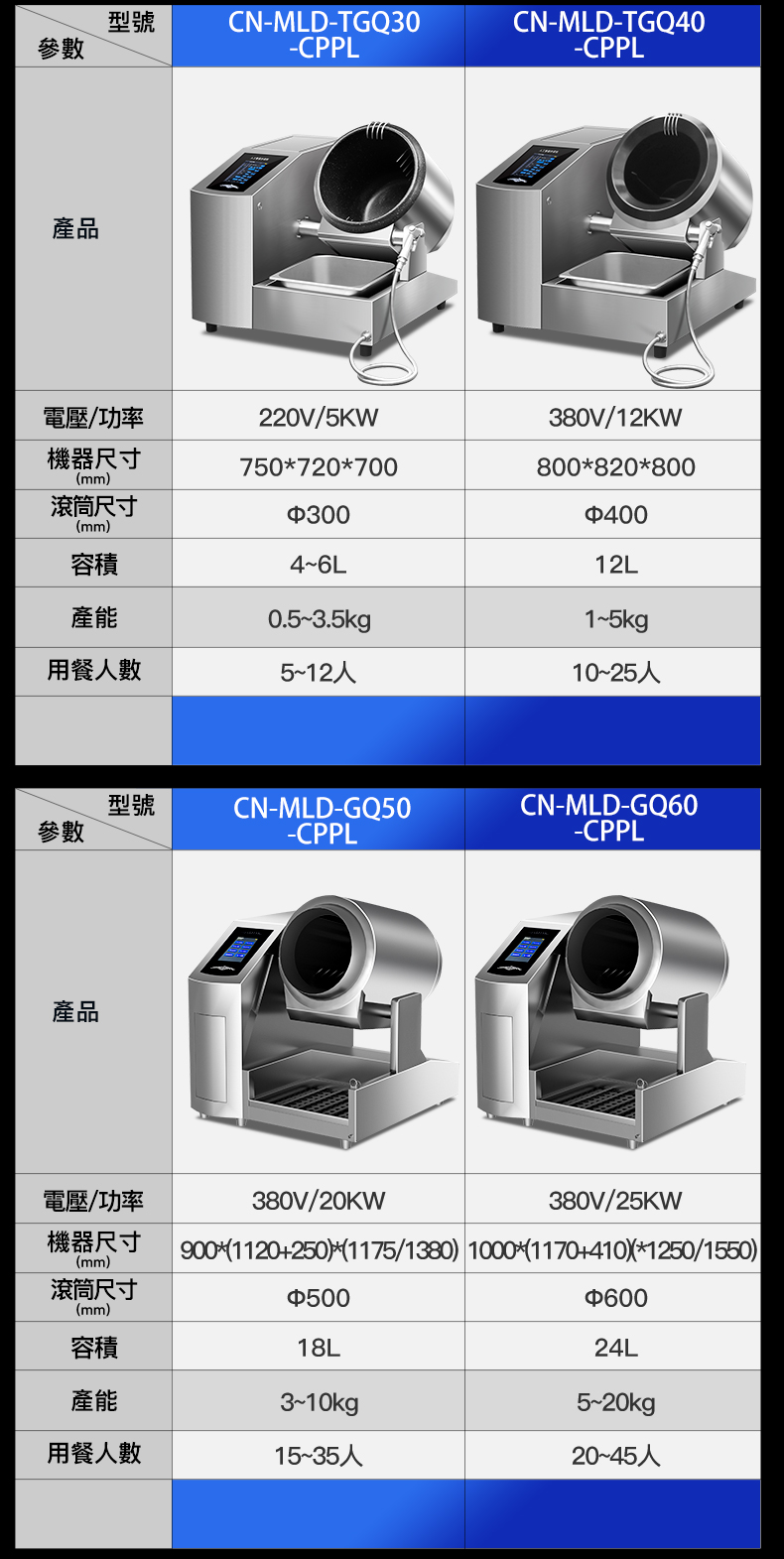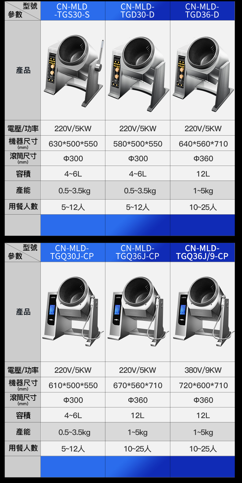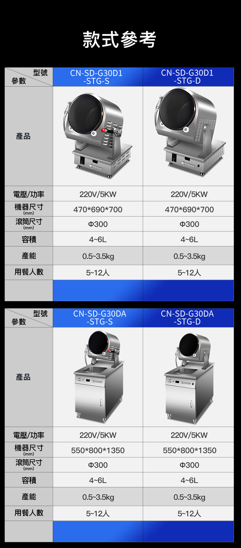 具備手動和自動兩種控制方式型號選擇,手動控制可滿足專業廚師對於火候和翻炒節奏的精確掌控,自動控制則方便快捷,適用於批量烹飪或初學者使用。
