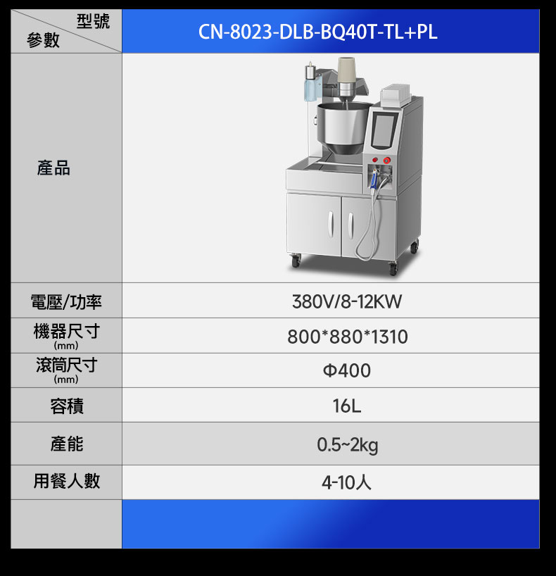 馳能臺式炒菜機具備自動控溫、自動翻炒、自動加料等功能,用戶只需將食材和調料放入機器,設定好程序,即可實現一鍵式自動烹飪。