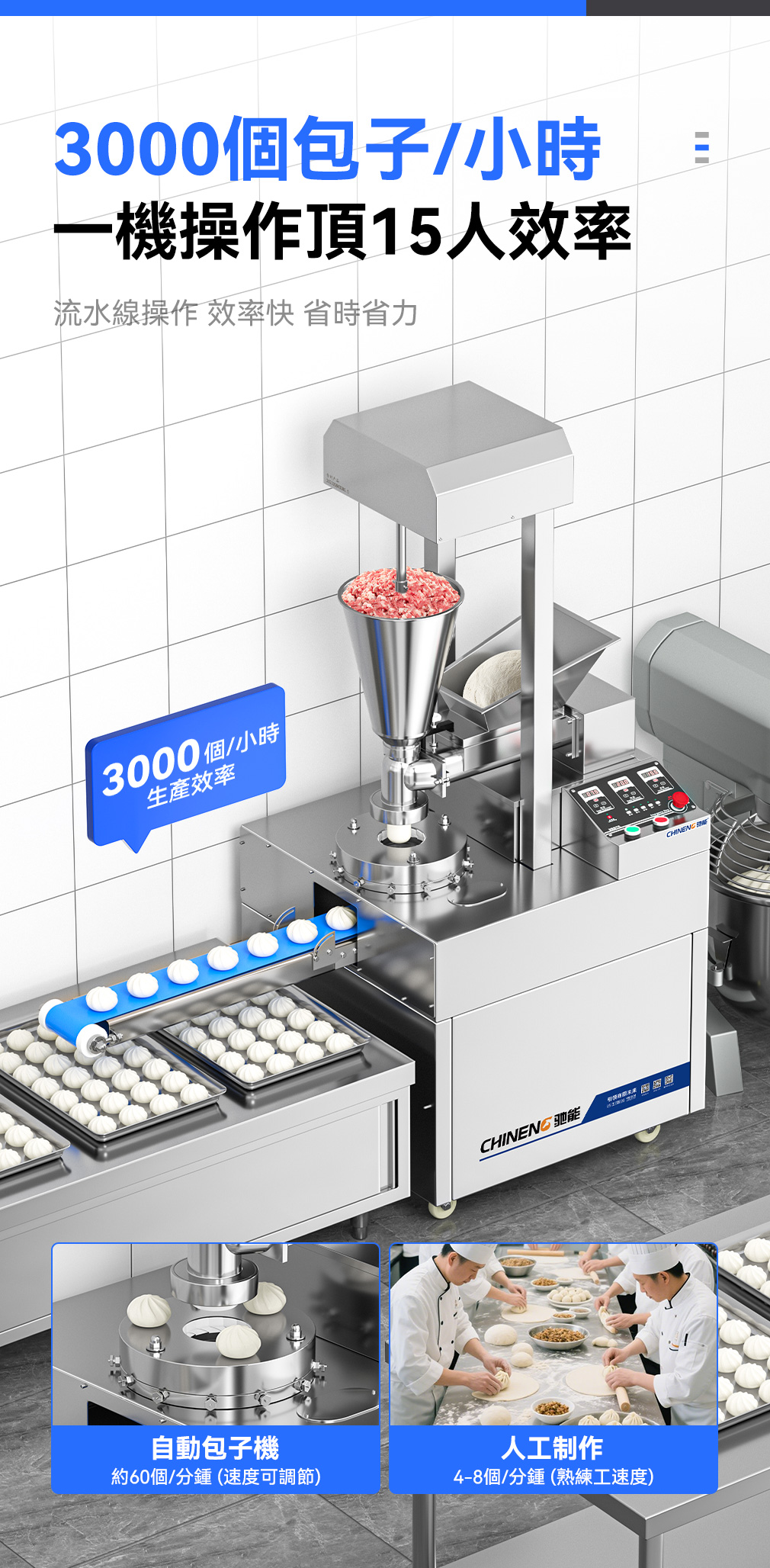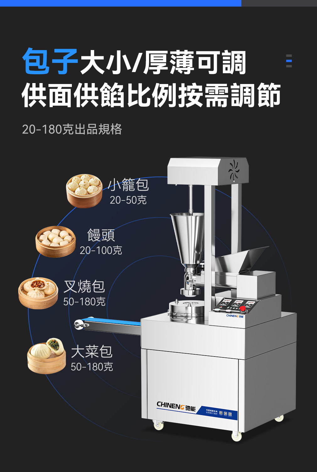高效產能:馳能包子機具有高效的產能,每小時可生產數千個包子,具體產量根據機型和配置有所不同。