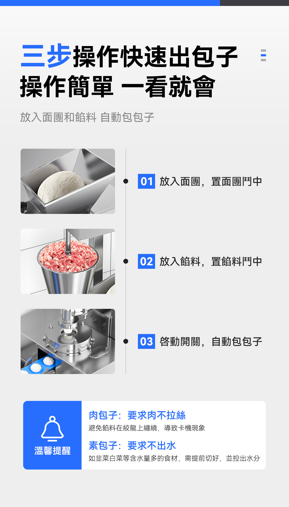 餡料任意調節:用戶可以根據需要調節餡料的量和種類,確保包子的口感和品質。