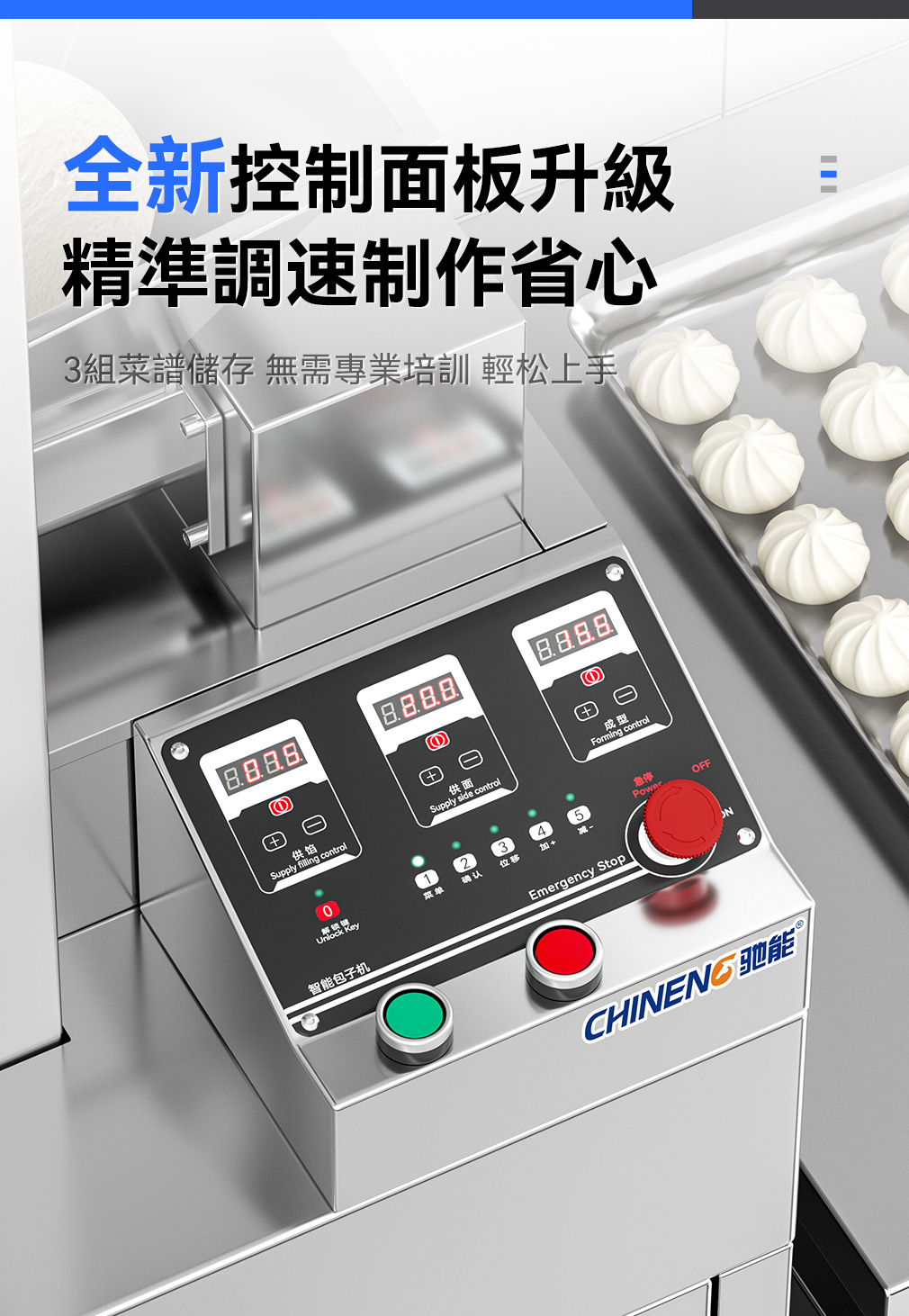 感應自動出料:馳能包子機採用感應自動出料系統,確保餡料和面團的精準配比,提高生產效率和包子品質。