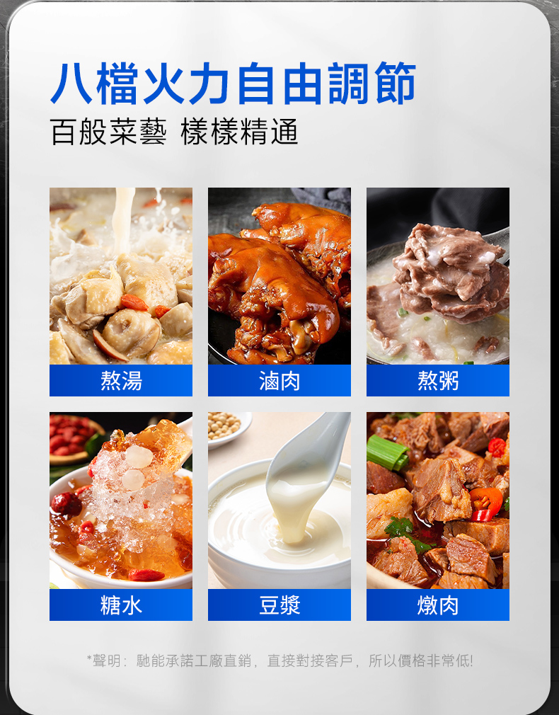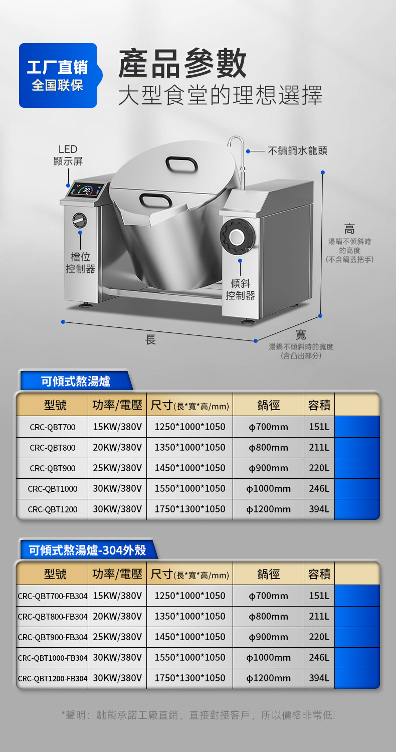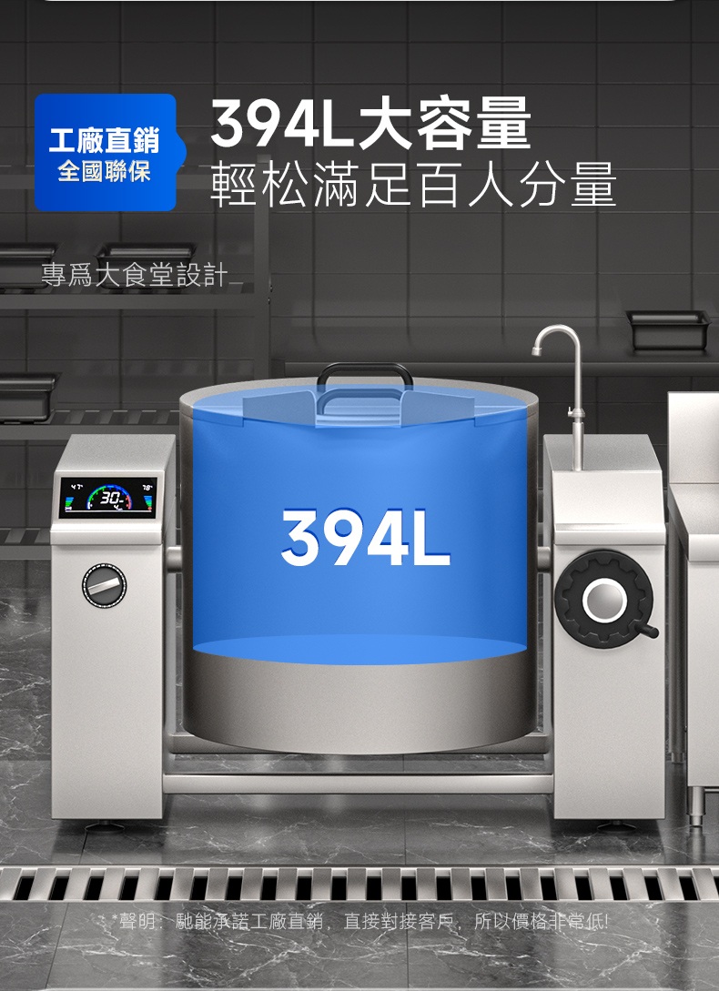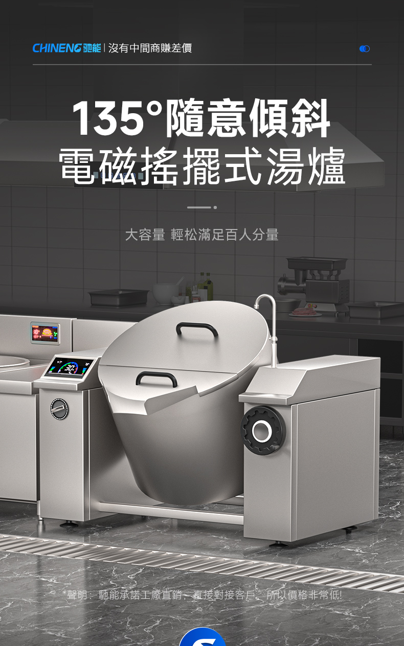 大容量設計:馳能可傾式湯爐通常具有較大的容量,適合大量烹飪需求,滿足餐廳、食堂等場所的使用要求。