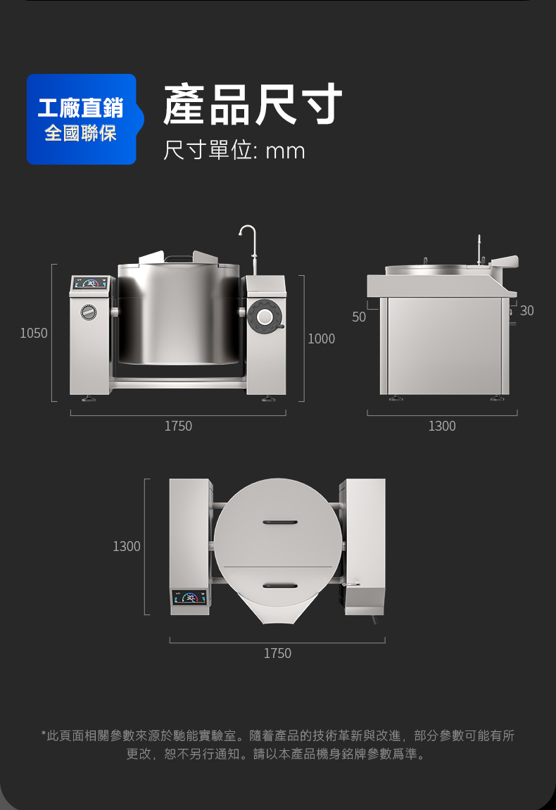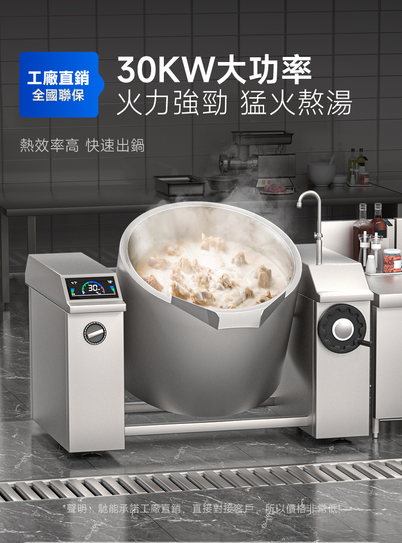 可傾斜設計:該設備採用可傾斜設計,便於倒出湯汁和清潔,提高工作效率。部分型號支持電機自動傾斜或手動傾斜,操作簡便。
