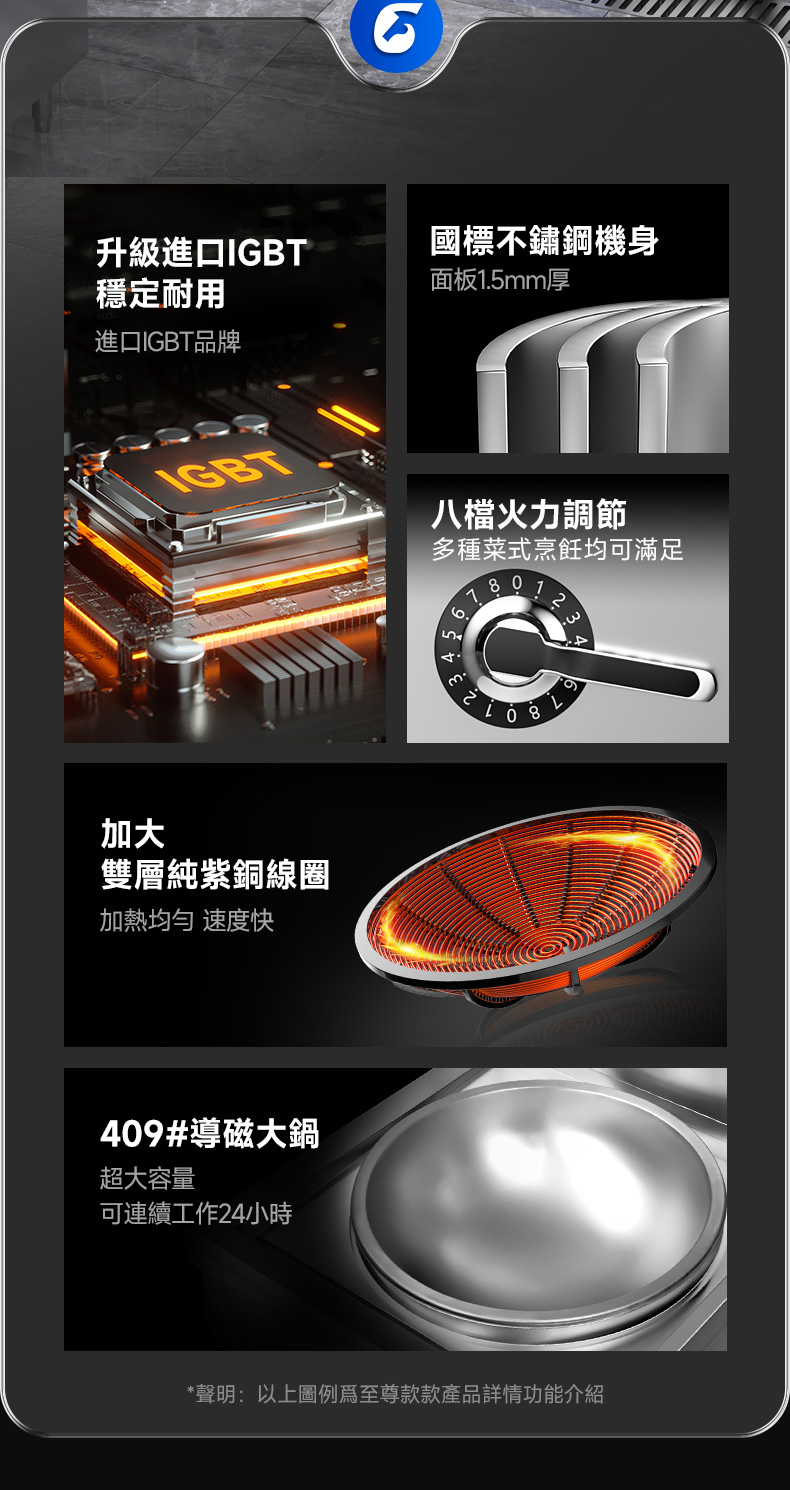 安全環保:該組合爐在使用過程中不會產生明火,因此消除了火災隱患。同時,它也不會釋放有害物質,對環境和人體健康無害。此外,電磁爐竈的噪音水平也相對較低,爲廚師提供了一個更加舒適的工作環境。